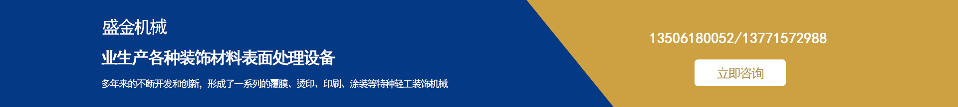盛金機(jī)械專業(yè)生產(chǎn)各種裝飾材料表面處理設(shè)備 集多年來(lái)的不斷開(kāi)發(fā)和創(chuàng)新,形成了一系列的覆膜、燙印、印刷、涂裝等特種輕工裝飾機(jī)械。并敢于和善于開(kāi)發(fā)用戶急需的特殊要求機(jī)械設(shè)備。